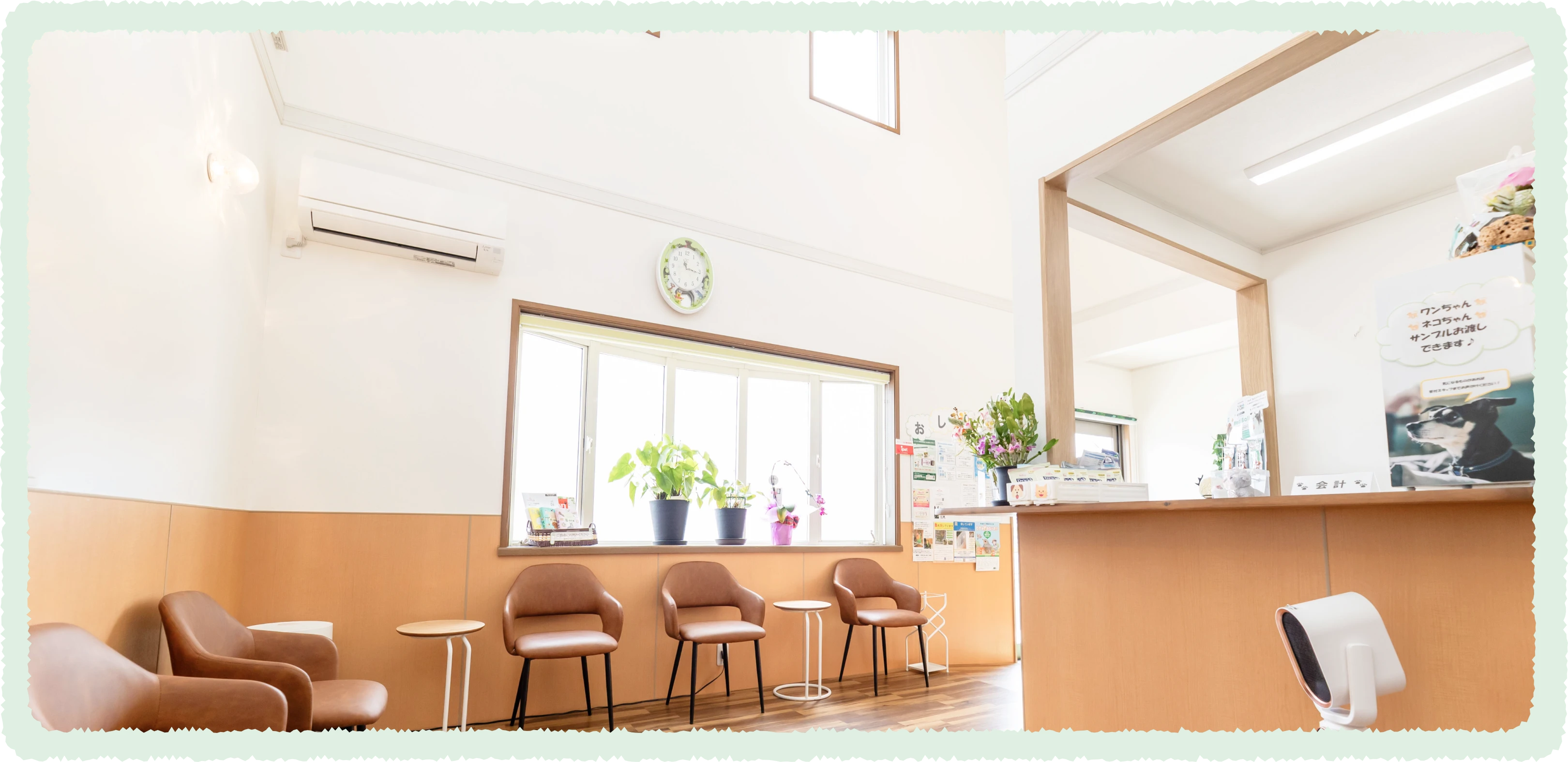 私たちは、飼い主さまと大切な家族である動物たちが安心して過ごせるよう、気軽に相談できる動物病院を目指しています。